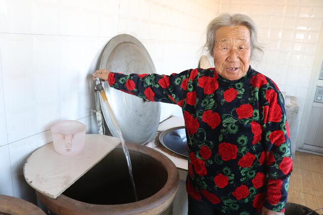 芙蓉老人说,过去,吃水困难是个头疼病,即使有了机井不再从井里打水,也要一年四季一挑一挑地往家里挑水,然后存放到一个大缸里留着用;后来,水龙头接进厨房,因为经常断水,还得存一大缸水省着用……