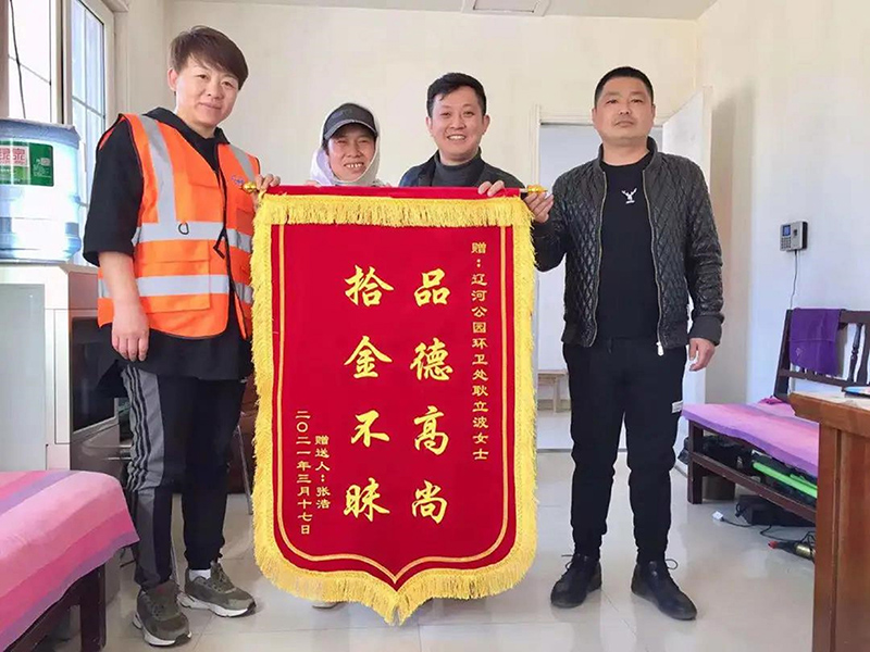 3月24日下午,在辽河公园内通辽市环卫处第七保洁队办公室内,一位年轻男子紧紧握住女环卫工耿立波的手激动地说:“可找到你了大姐,太感谢您了,向您致敬……”并随后献上一面绣有“拾金不昧 品德高尚”的锦旗。耿立波作为城市美容师,不仅用辛勤的劳动和汗水美化着城市环境,更用实际行动彰显着普通劳动者的爱心与风范,用善举传递着社会正能量。