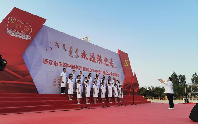 6月24日下午,通辽市卫生健康系统职工合唱专场演出在奥体广场举行。本场合唱是通辽市庆祝中国共产党成立100周年群众大合唱活动的第三场。