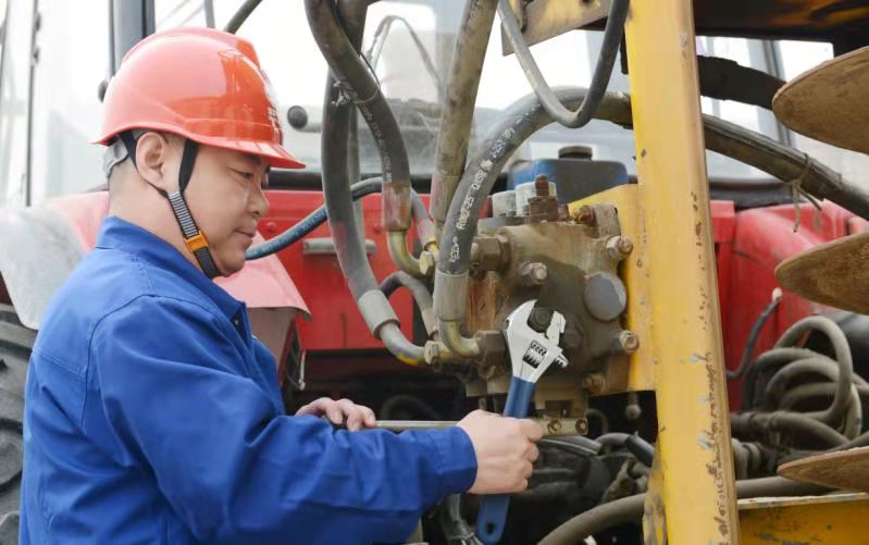为降低成本,吴军的设计以农用拖拉机为载体,操作简单、机动灵活;为适应土质,吴军采用旋挖钻头,旋挖部分设计有液压加力,刀片采用锯齿形YG8硬制合金,可满足不同地质需要;在钻杆的上端,吴军创造性地设计出十字轴钻头自动校准系统,使钻杆在任何情况下都与地面保持垂直。