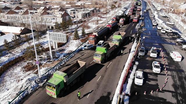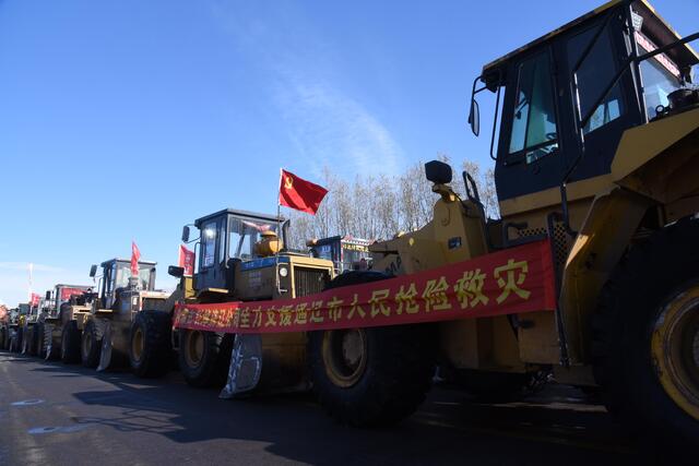 11月10日,赤峰支援通辽救援队出发!他们带着150人, 100辆装载车、20辆铲车、200吨融雪剂来了!