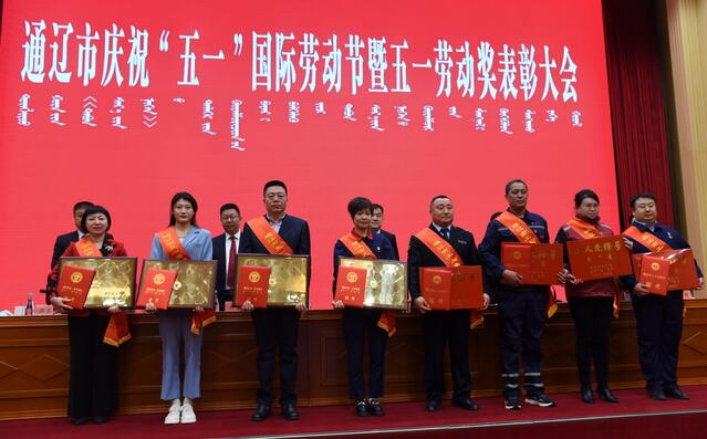 大会授予内蒙古联晟新能源材料有限公司等13个单位通辽市五一劳动奖状,授予张元等98名职工通辽市五一劳动奖章,授予内蒙古春城热力服务有限公司外网站等20个集体通辽市工人先锋号。大会为荣获全国五一劳动奖章和全国工人先锋号的单位和个人,自治区五一劳动奖状、自治区工人先锋号、自治区五一劳动奖章的单位和个人,全市五一劳动奖状、全市工人先锋号、全市五一劳动奖章的代表进行颁奖。全国五一劳动奖章获奖代表在大会上发言,全市五一劳动奖章获得者代表宣读了《倡议书》。