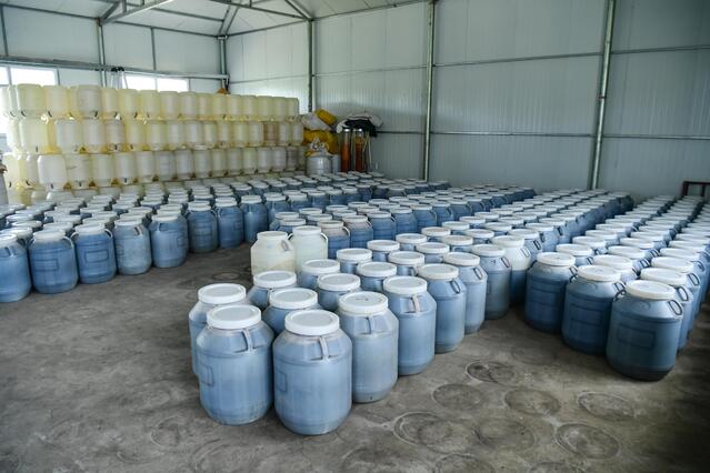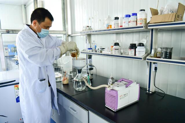在苋谷生物的生产车间,地上摆放了一排排大小不一的蓝色塑料桶,工人们正在一个银色罐型机器前操作。杨玉生介绍说:“这些大桶是马齿苋提取液,还需要发酵,时间至少需要半年才能出售。小桶是羊胎素,这些产品是发往广州的。工人们正在做的是积雪草提取,我们还在进行苦参、人参等多种植物的提取研究。”包括野生马齿苋提取物、人参根提取物、水解胎盘(羊)提取物、积雪草提取物等,苋谷生物已生产20多个产品,这些产品主要销往广州、上海。