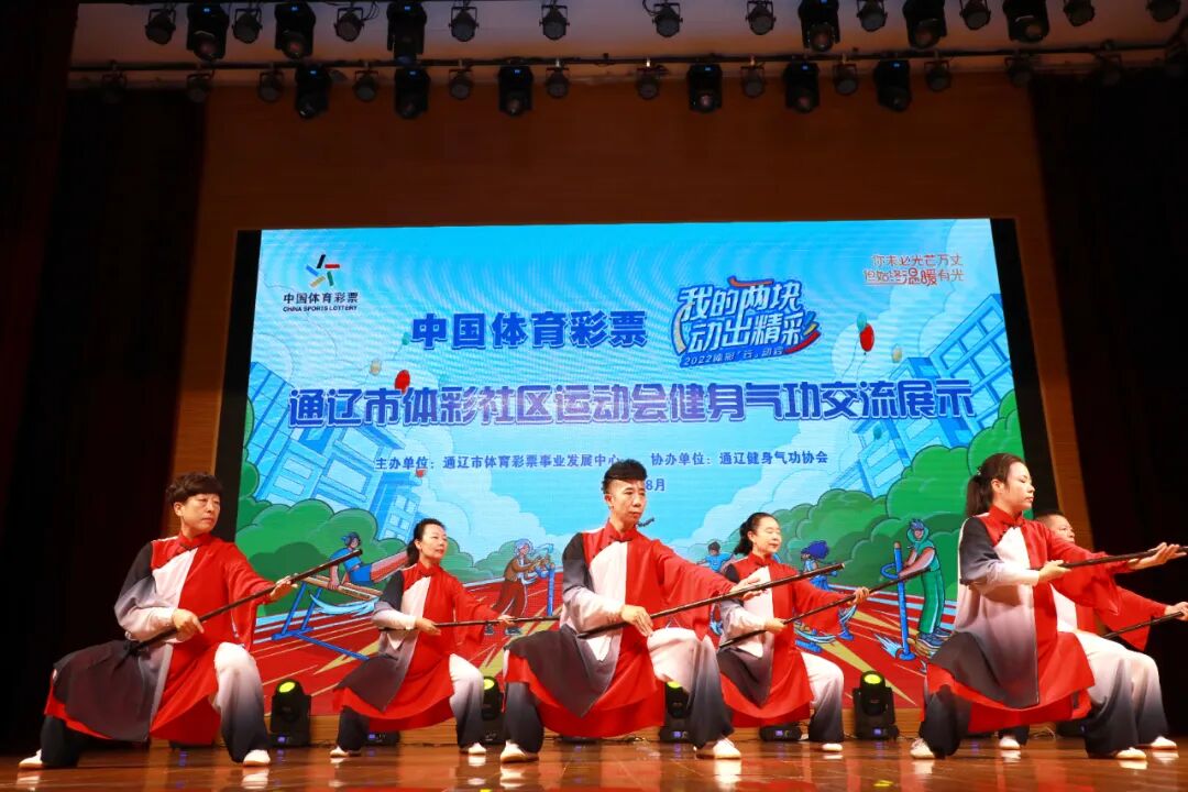 健身气功是中华民族的瑰宝,是一项具有深厚文化底蕴的民族传统体育项目,在弘扬优秀传统文化,满足群众多元化健身需求,提高群众健康素质等方面发挥着重要作用,深受社区居民的喜爱。8月29日上午,来自科尔沁区、开鲁县、库伦旗、开发区20个社区健身气功站点的200余名健身气功爱好者参与了展示活动。健身气功爱好者欢聚一堂,现场交流心得,同台切磋技艺。他们以深厚的健身气功功底,展示了健身气功五禽戏、八段锦、太极养生杖、马王堆、十二法五种功法。活动中,通辽健身气功协会展示的“太极养生杖”和“五禽戏”将现场氛围推至高潮。展示结束后,通辽市体彩中心为每位参赛选手分发了精美礼品。