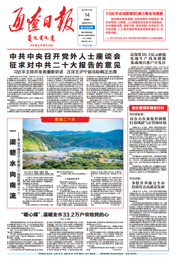 2022-10-14 来源:通辽日报