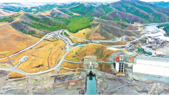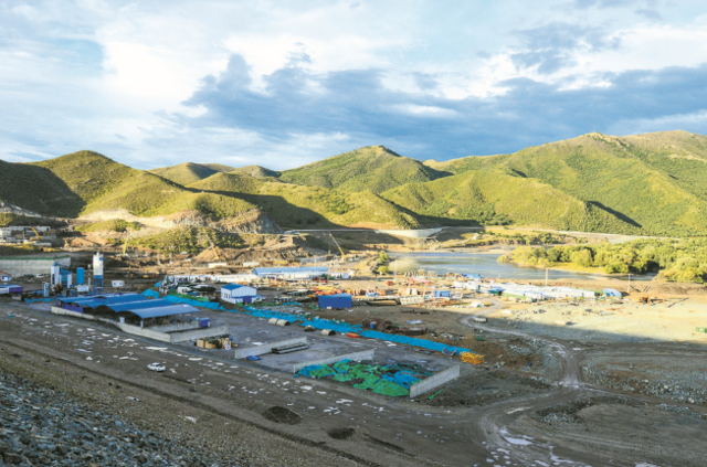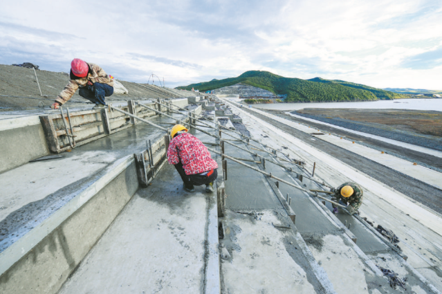 文得根水利枢纽大坝上游护坡混凝土浇筑。张启民 摄
