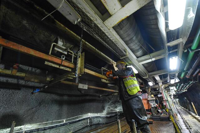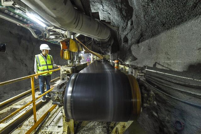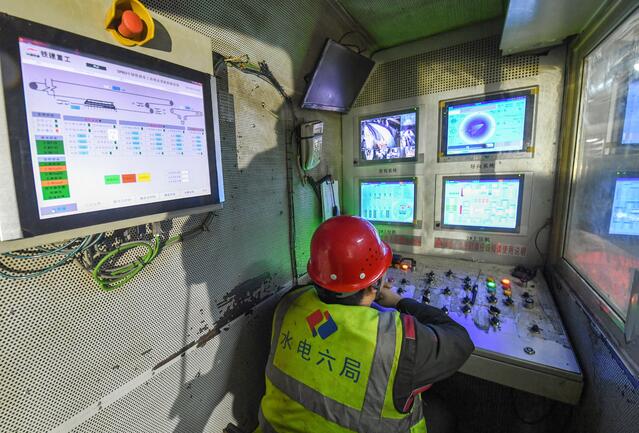 工人查看TBM设备运转情况。张启民 摄
