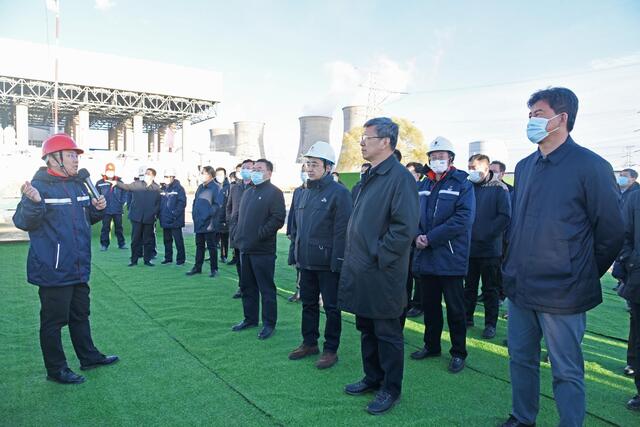 自治区党委常委、市委书记孟宪东在通辽发电总厂了解国电投2*350MW热电联产项目建设情况。