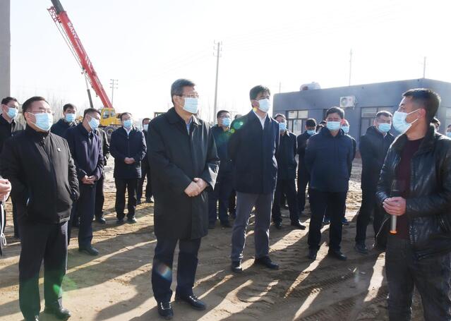 自治区党委常委、市委书记孟宪东在雄越年产7000吨特种玻璃纤维纱及9000万米玻璃纤维布生产线项目建设现场了解企业建设情况。