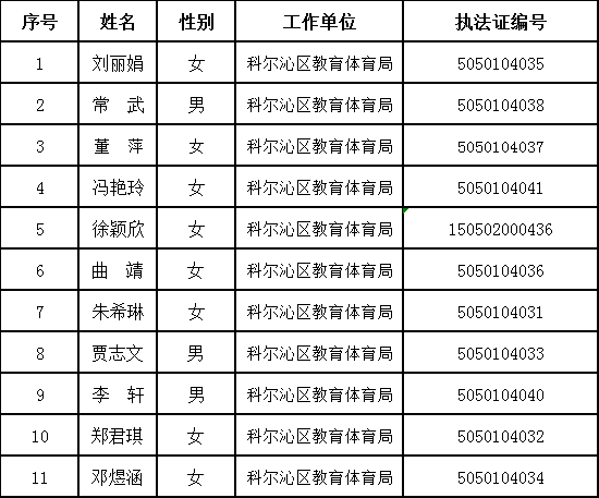 通辽市科尔沁区教育体育局行政执法人员信息公示