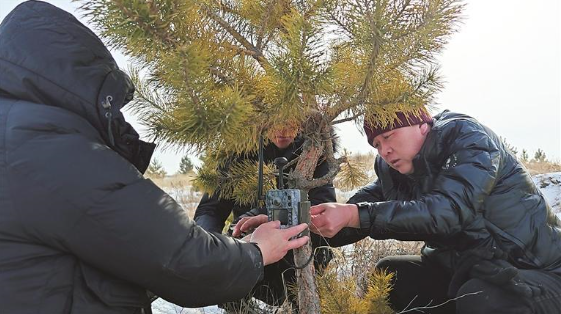 找到红外相机设置点,护林员们安装、调试,在地上撒上玉米,万事俱备,只等野生动物来觅食,即可拍到它们的影像资料。这时,该中心负责人图力古尔拿出一张宣传单递到记者手里:“2月2日是第28个世界湿地日,‘湿地与人类福祉’‘人与湿地生命交织’是今年的主题。一会儿我们要去甘旗卡大集,马上过春节了,集上人多,适合宣传发动村民共同保护我们的生态环境。”
