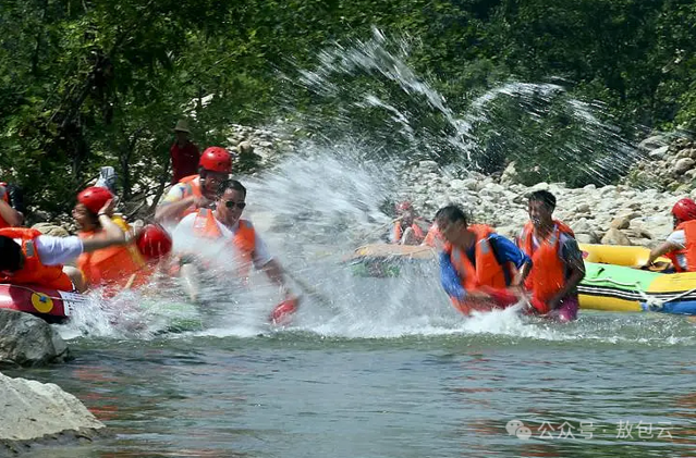 行至某处,一艘小船翻倒落水,一船人拥入一个清凉的怀抱,引起一片欢笑。连锁反应下,后到的人们索性都把小船弃了,下饺子一样扑到水里,一群萍水相逢的游人聚在一处打起了水仗,都顾不上分清敌我,制定战术,抄家伙逮住人就一顿瓢泼,畅快淋漓,大笑声响彻山林,引得飞鸟振翅高鸣。