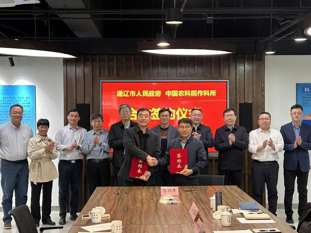 4月1日,中国农科院作科所与通辽市政府签订科技合作协议,双方将开展玉米密植精准调控技术、沙区耕地增粮保育以及旱作区玉米高效生产技术等合作研究与全域推广,推进科教融合,共同创建中国玉米生产与科技创新高地,推动全市1000万亩灌溉玉米全面应用密植精准调控技术,实现全市节水增粮40亿斤。