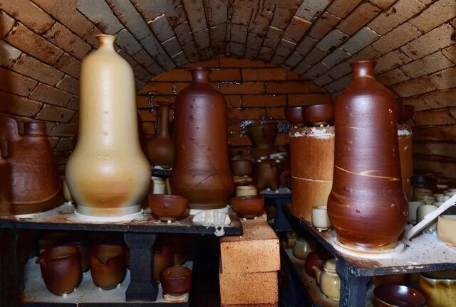 经过匠人精心调配的专用陶土,制成形态各异的素坯,放入为柴烧专门搭建的耐高温窑,以松木为燃料,三至五天不眠不休轮班投柴,加柴的速度和方式、燃料的种类、天气的状况、空气的进流量等细微因素,都会影响窑内作品的色泽变化。