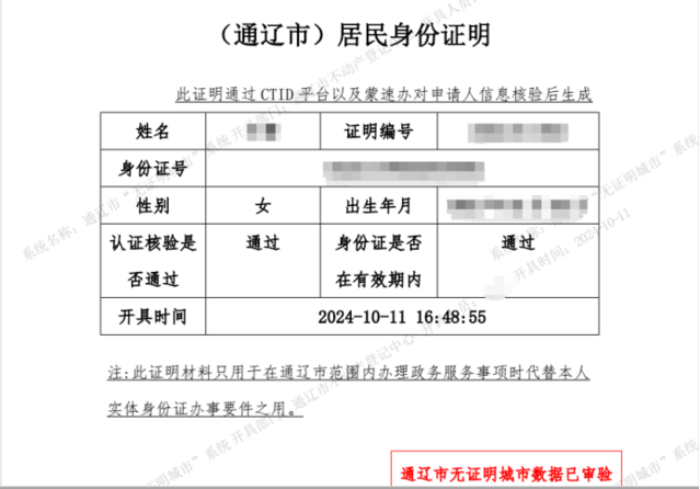 根据通辽市自然资源局和通辽市行政审批政务服务与数据管理局、通辽市公安局、通辽市司法局联合发布《关于在政务服务领域推广使用居民身份证明和不动产登记证明的通知》要求,深入推进“无证明城市”在全市不动产领域应用,在登记事项办理过程中,申请人无法当场提供居民身份证、结婚证等实体证照的,综合受理窗口人员在申请人授权后,可通过通辽市“无证明城市”系统调取打印相关证明,完成申请。