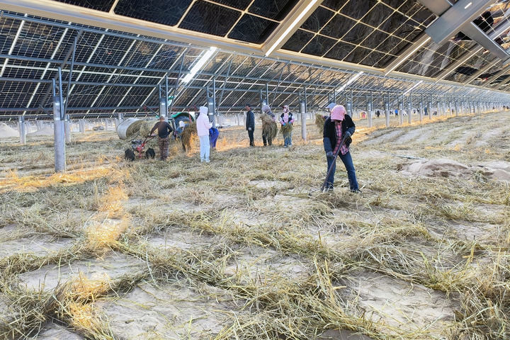 库布其光伏治沙项目建设有力带动地方经济发展和农牧民就业。柳天云告诉记者,该项目通过“公司+农户+合作社”的乡村振兴互助模式,预计每年可稳定吸纳500人次从事光伏板组件清洗、板下农作物种植管护和牧业养殖等工作。