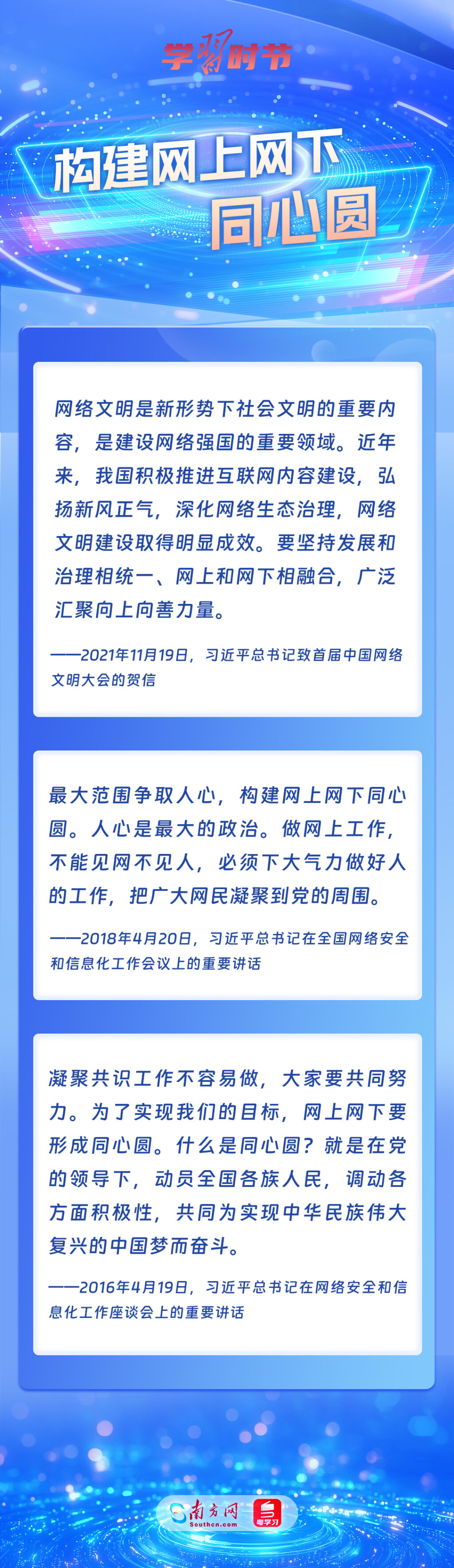 党的十八大以来,习近平总书记从信息化发展大势和国内国际大局出发,就网络安全和信息化工作提出一系列具有开创性意义的新理念新思想新战略,形成了习近平总书记关于网络强国的重要思想。其中,有不少生动形象的表述,深入人心,发人深省,让我们一起学习。