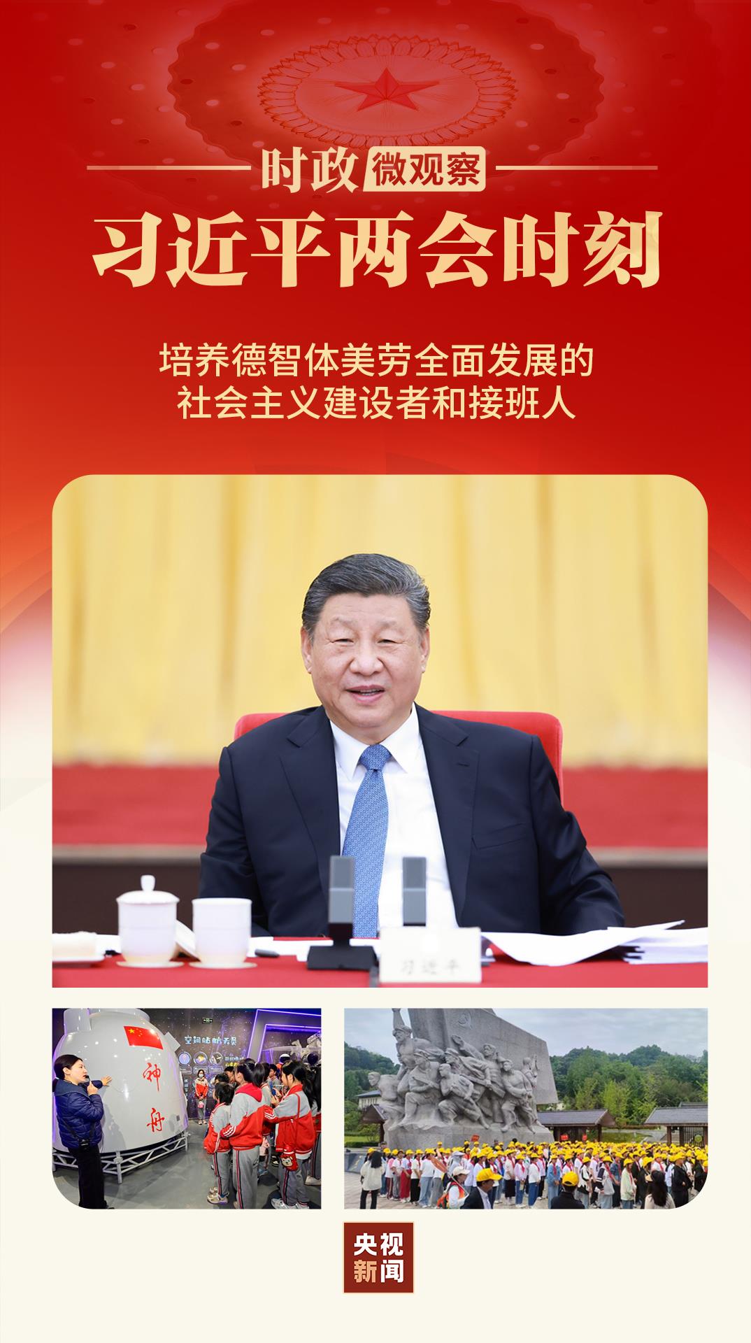 在3月6日的全国两会政协联组会上,习近平总书记站在为党育人、为国育才的战略高度,对如何培养德智体美劳全面发展的社会主义建设者和接班人,提出明确要求。