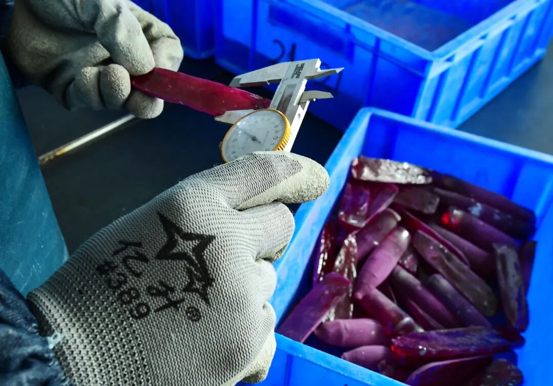 来到宝多多的生产车间内,一排排企业自主研发的结晶炉设备高效运转。两排机器中间的工作台上,一个个整齐摆放、形状颇似“烛台”的物件引人好奇。