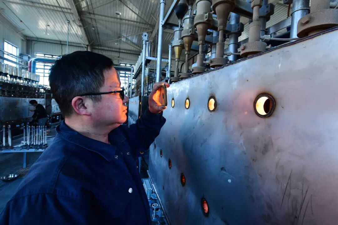 正在工作的结晶炉温度非常高,葛建国透过一个小窗口,用陪伴他多年的观察镜查看红宝石的长势,他从事这个行业已三十多年。葛建国介绍,项目分两期建设,一期已投产试运行,全部投产后年产150吨合成刚玉及尖晶石,年产值达7000万元。项目二期年产18吨高端功能晶体,年产值达3600万元。