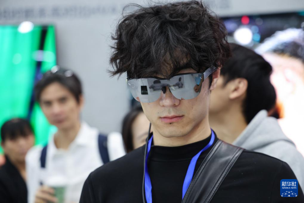 4月9日,观众在第十三届中国电子信息博览会上体验一款智能眼镜。