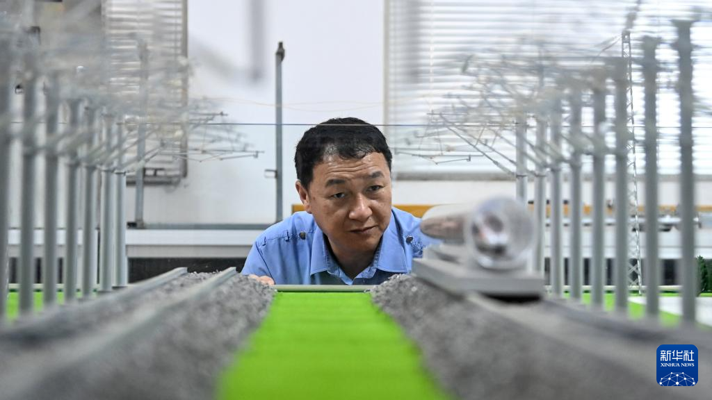 彭春林在彭春林创新工作室通过观察沙盘思考研发项目的运用(4月25日摄)。新华社记者 张爱林 摄