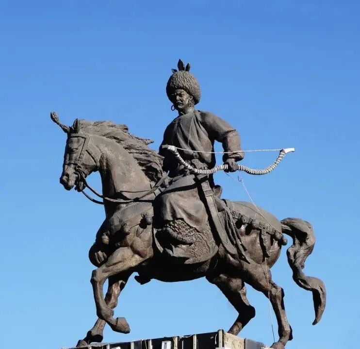 ▲坐落于内蒙古自治区赤峰市巴林左旗林东镇(辽上京临潢府所在地)的辽太祖耶律阿保机骑射雕塑。(图片来源:视觉中国)