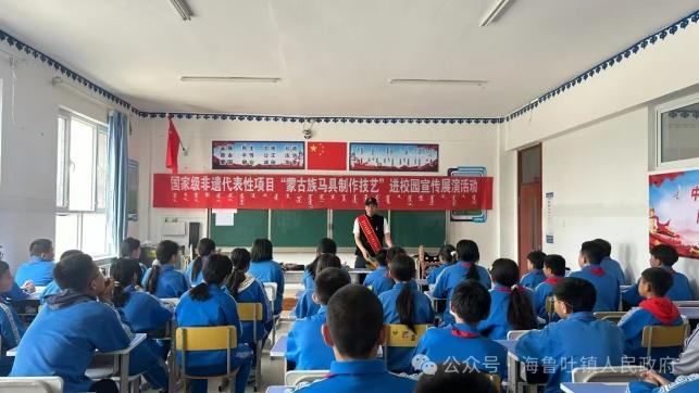 科左后旗文化馆组织通辽市级非遗传承人和文化志愿服务队,以弘扬中华优秀传统文化、传承非遗为目的,开展国家级非遗代表性项目“蒙古族马具制作技艺”进校园宣传展演活动,走进海鲁吐镇巴彦忙哈中心校和海鲁吐中心校 。市级代表性传承人胡长明带不同风格马具入校,讲解制作与使用,让学生感受非遗魅力,活动获家长好评,增强了孩子民族自豪感与归属感。