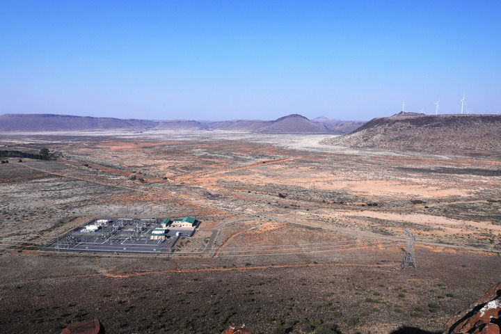 这是2023年8月10日在南非北开普省德阿镇拍摄的由中国龙源电力集团南非公司运营的德阿风电项目。新华社记者 董江辉 摄