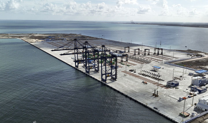 这是2023年12月1日在埃及亚历山大拍摄的由中国港湾工程有限责任公司承建的阿布基尔集装箱码头(航拍照片)。新华社发(中国港湾工程有限责任公司供图)