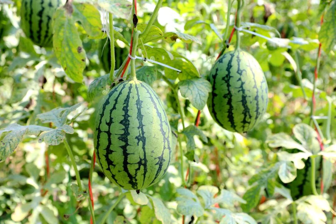 东明镇代筒村的设施农业大棚内,绿意盎然,工人们正忙着采收一个个圆润饱满的西瓜。与传统“趴”在地上的西瓜不同,这里的西瓜都吊在排排挂起的藤蔓间,格外引人注目,这便是农户姜海丽引以为傲的2k小吊瓜。