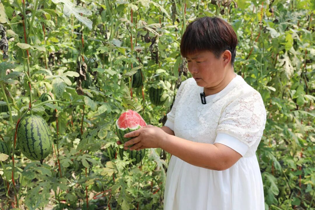 “这个品种的瓜皮特别薄,手一掰就开了,满满都是果肉,这汁可多了,特别甜,连皮都是甜的。”姜海丽随手摘下了一颗成熟的西瓜放在手中,用手一掰,红粉相间的瓜瓤展现在眼前。她介绍说,2k小吊瓜单果重3-5斤,自2020年种植以来,凭借好品质赢得市场青睐。“起初我们主动找客户,如今客户主动上门订购,销路不用愁。”今年,她种植的30亩小吊瓜,亩产精品瓜6000多斤,主要销往北京、山东、河北、沈阳等地,按当前市场价1.8至1.9元/斤计算,预计收入可达35万元。