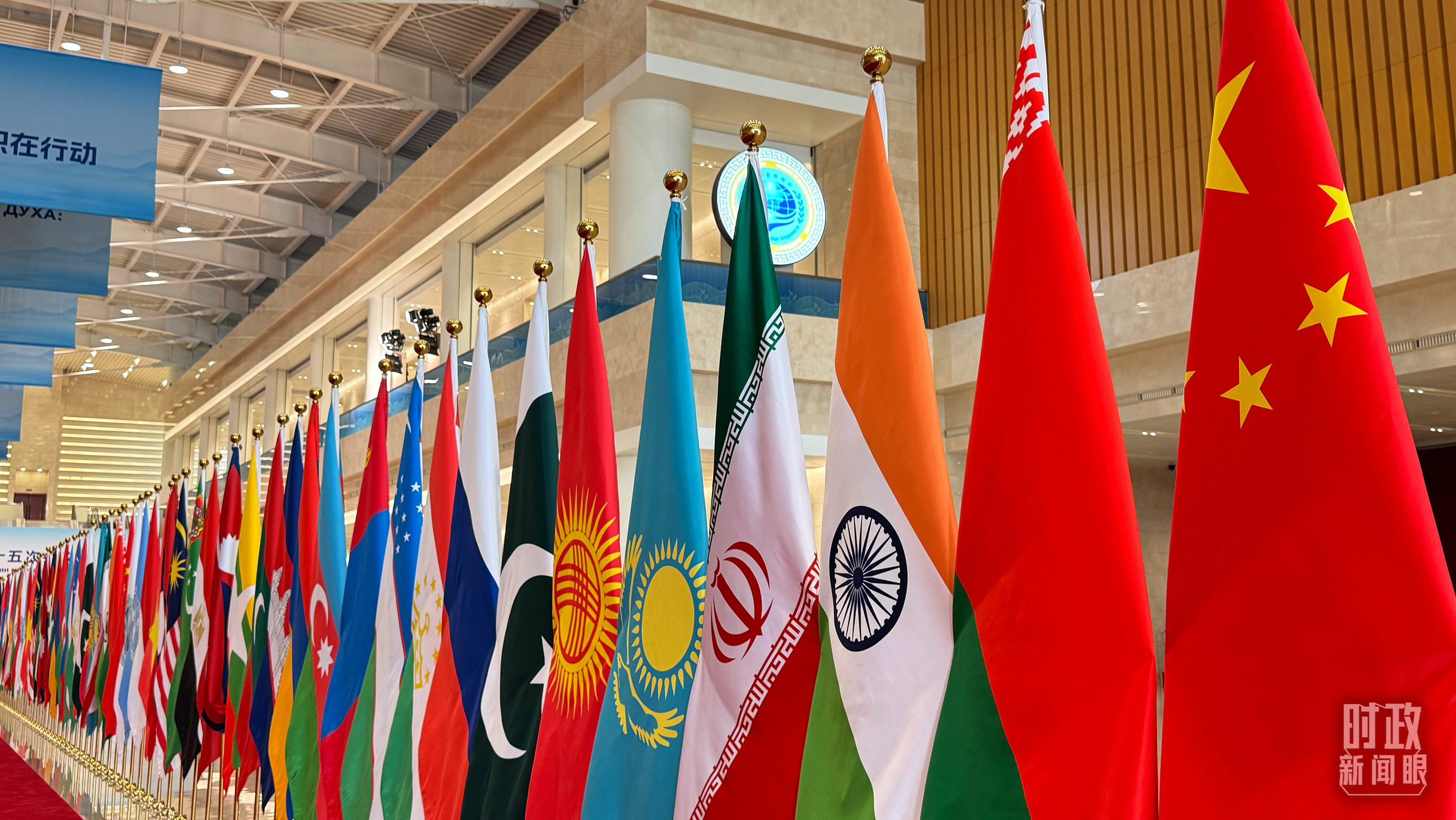 △上海合作组织2024—2025年轮值主席国徽标。(总台央视记者范一鸣拍摄)