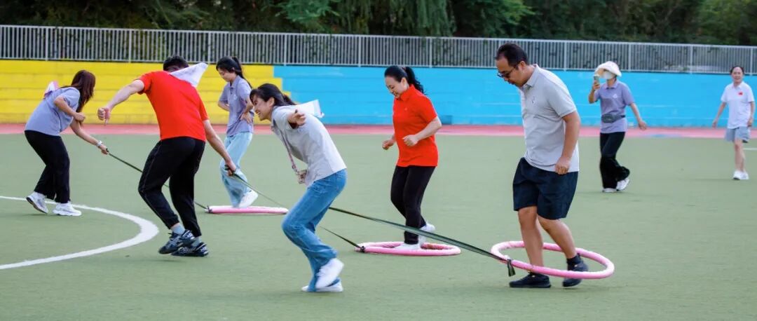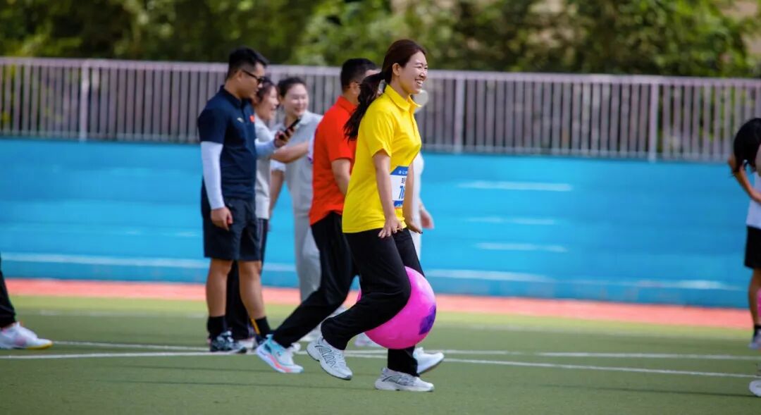 “追求卓越、自强不息”的校训,在赛场上被赋予新的育人内涵。当教师们在跑道上为同伴冲刺助威,在趣味项目中为团队荣誉咬牙坚持时,他们正在演绎“最好的教育示范”。赛场上的“竞争不缺位、协作不越位”,对应着课堂上“因材施教、互助共进”的教学原则;面对输赢时的“坦然从容、互相鼓励”正是对学生“成长型思维”的生动引导。这种“不在讲台却胜似讲台”的沉浸式育人,比说教更具穿透力。教师用行动告诉学生:真正的优秀,是既能独自奔跑,也能携手同行;真正的成长,是在竞争中保持温度,在协作中彰显个性。