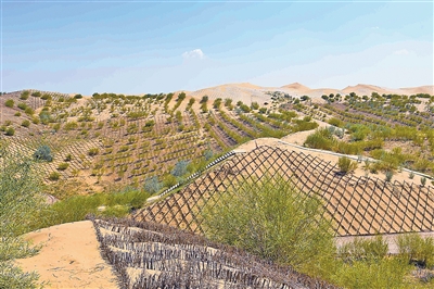 治理中的库布其沙漠。记者 吴 勇摄