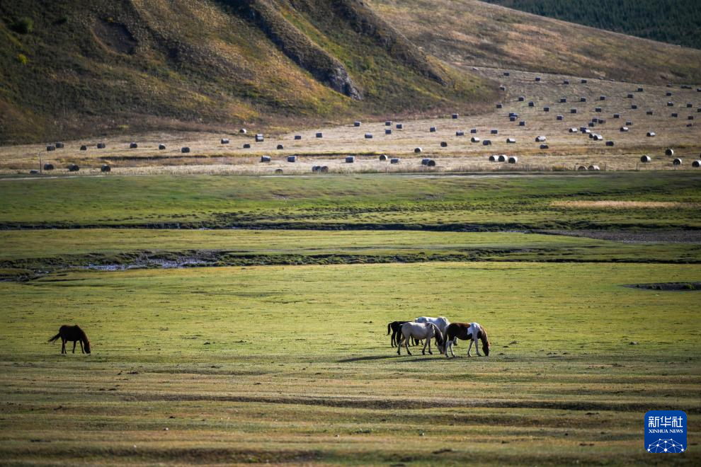 9月20日,马群在罕山国家级自然保护区内觅食。新华社记者 连振 摄