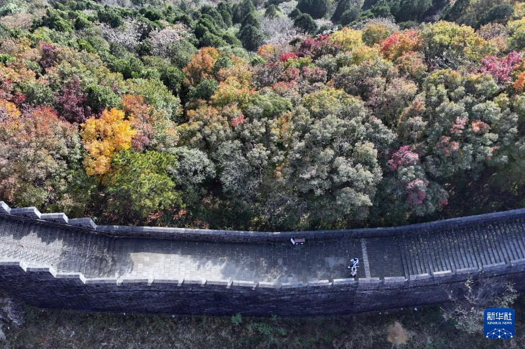10月28日拍摄的天津市蓟州区黄崖关长城秋景(无人机照片)。新华社记者 李然 摄