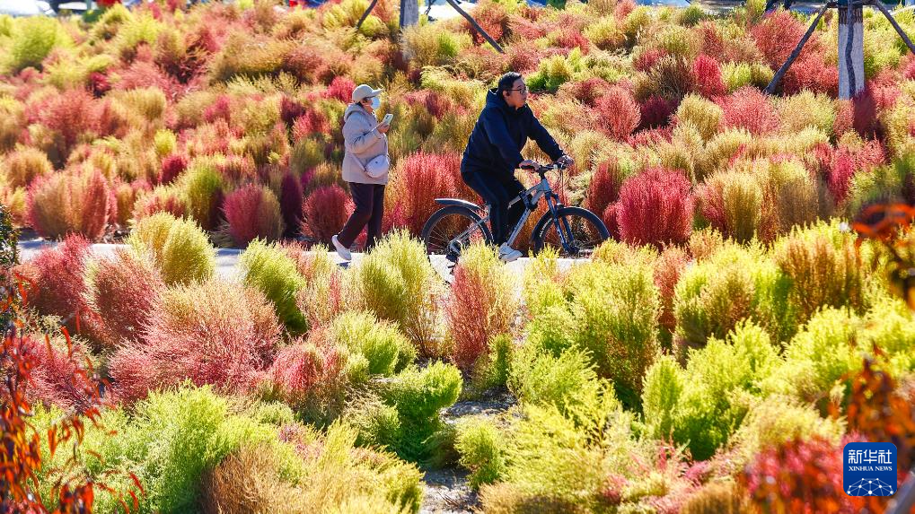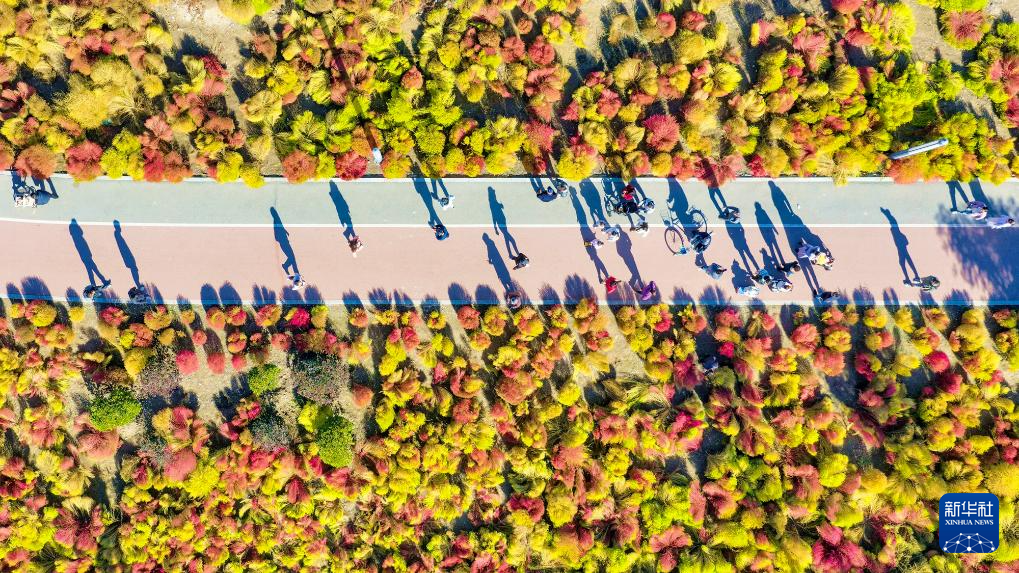 11月2日,游人在天津市滨海新区的白鹭洲公园赏秋游玩。深秋时节,景色绚烂,全国多地迎来赏秋热潮。新华社发(杜鹏辉 摄)