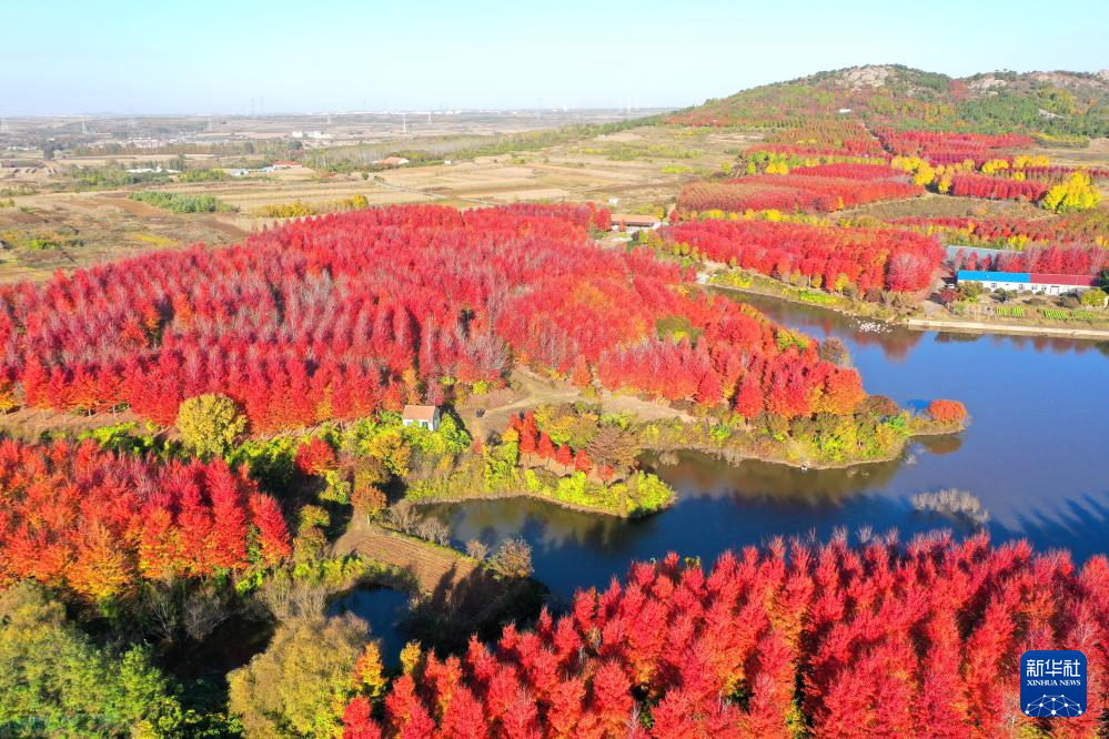 11月2日在山东省青岛市即墨区金口镇拍摄的枫树林(无人机照片)。深秋时节,景色绚烂,全国多地迎来赏秋热潮。新华社发(梁孝鹏 摄)