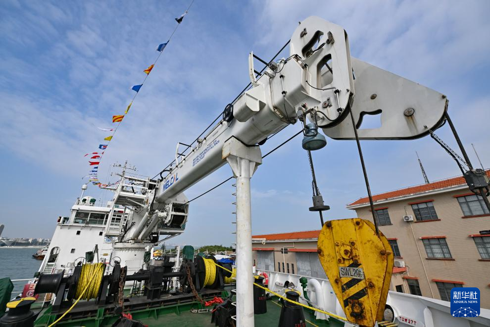这是“海巡176”轮配备的20吨液压起重机(11月13日摄)。