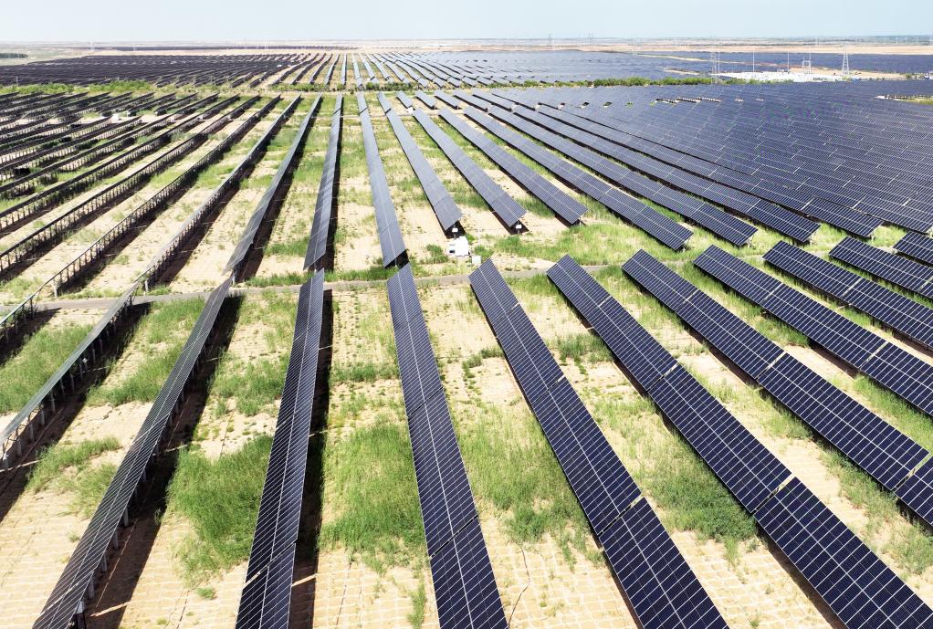 内蒙古乌兰布和沙漠光伏治沙项目区。新华社记者李云平 摄