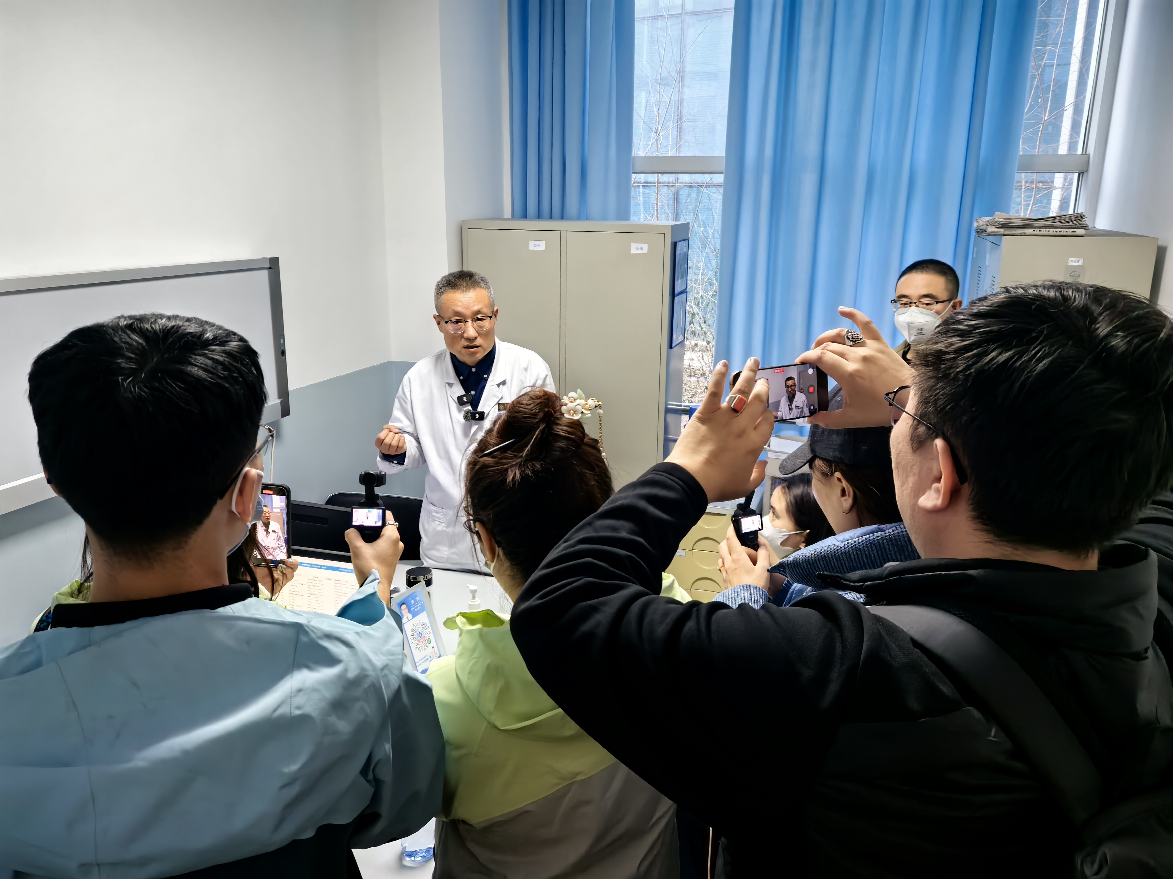 12月5日,蒙古国记者在内蒙古自治区国际蒙医医院采访。(曹一鸣 摄)
