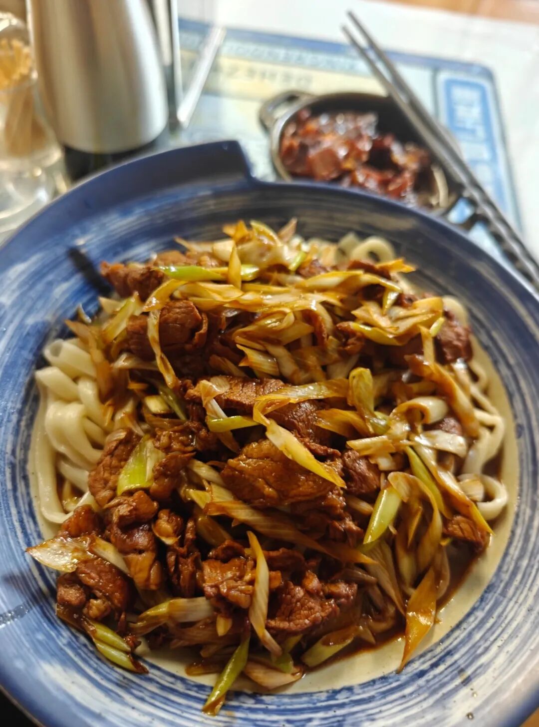 羊肉汆面:新鲜的羊肉片搭配爽滑的面条,汤汁鲜香浓郁,喝一口热汤,吃一口面和肉,暖心暖胃,驱散一身寒气。