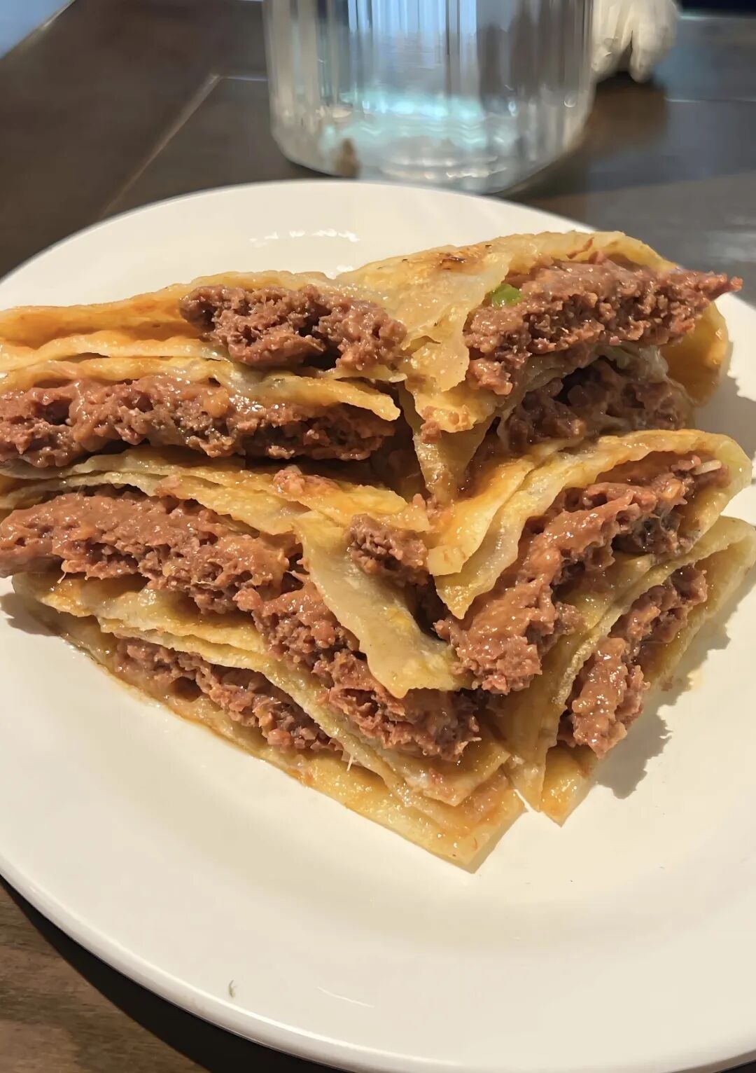 草原牛肉馅饼:皮薄如纸,馅大饱满,新鲜的牛肉剁成馅,煎至金黄酥脆,咬一口汁水四溢,牛肉的鲜香瞬间在口腔里炸开。