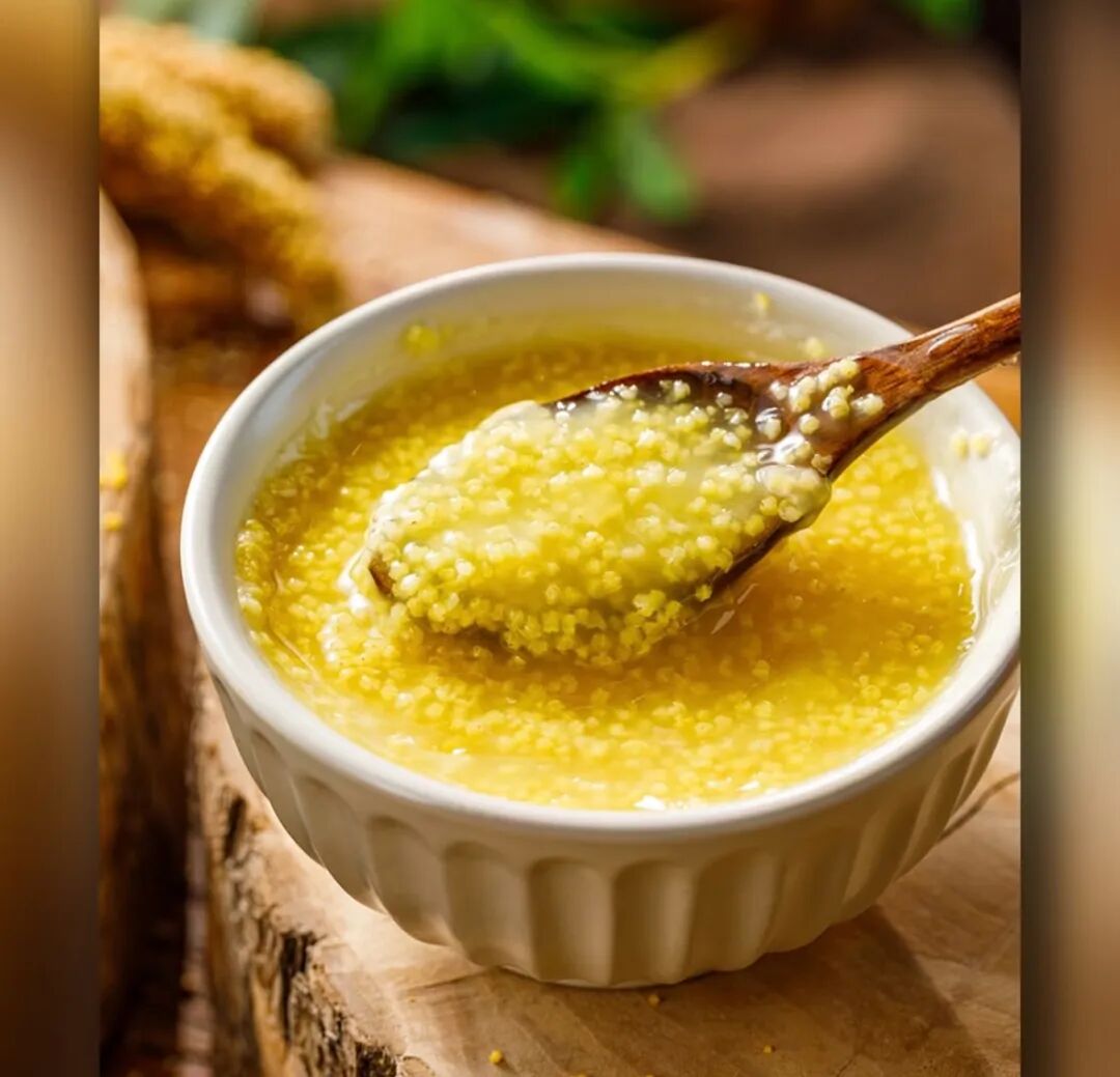 小米粥:浓稠的小米粥熬得软糯香甜,搭配馅饼和炖菜,清淡解腻,营养又美味。