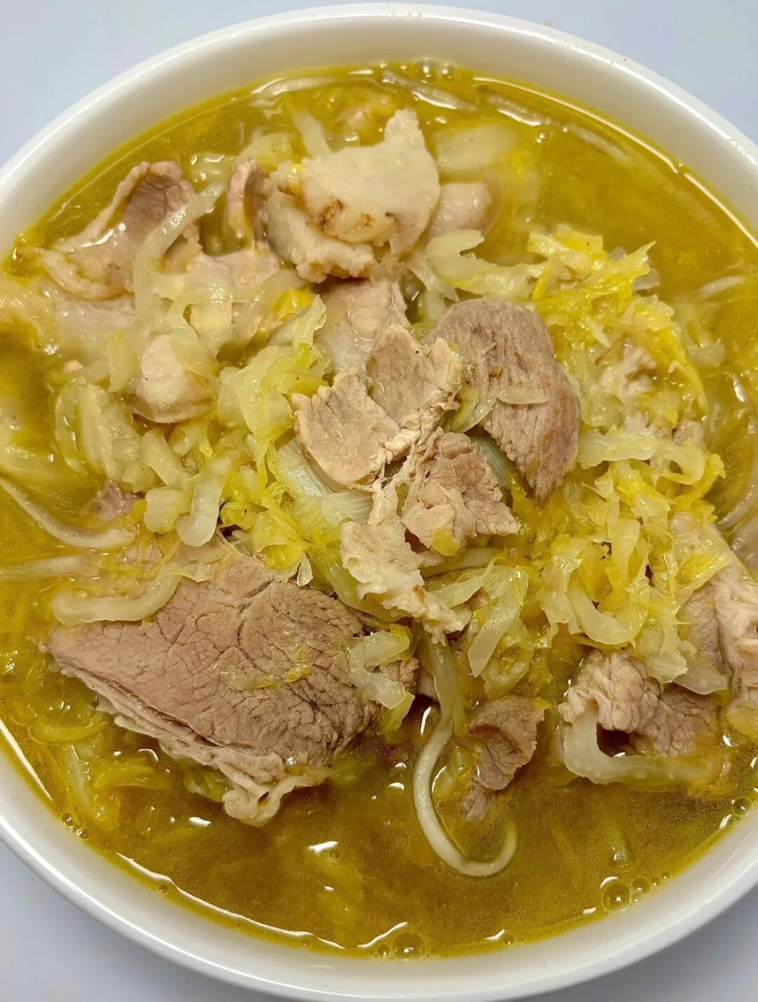 酸菜炖白肉:东北特色与草原风味的碰撞,酸菜酸爽解腻,白肉肥而不腻,炖得软烂入味,喝一口热汤,暖心暖胃。
