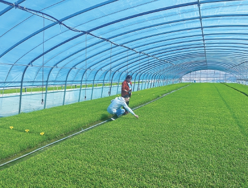 兴安盟育种联合攻关团队成员查看秧苗长势。 徐兴健 摄