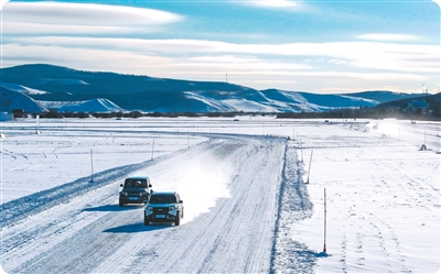 12月8日,在呼伦贝尔市牙克石市一家寒地试车基地,新能源汽车进行低温环境车辆性能检测。王正摄(人民图片)