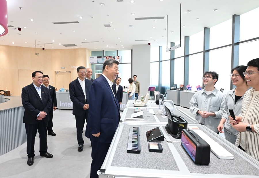 2025年4月29日,习近平总书记在位于上海徐汇区的“模速空间”大模型创新生态社区人工智能产品体验店考察。