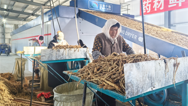 “项目运营20多天已切制鲜货700多吨,还有500多吨待加工。”国安农业开发有限公司总经理刘国安介绍,这条生产线日加工鲜货约30吨,年生产能力超5000吨。公司采用“公司+合作社+农户”模式,带动周边农户发展药材种植7000多亩。此前,种植户仅能售卖鲜货,不仅市场价格波动大,仓储难题也严重制约产业发展。“如今趁鲜加工可提升药材附加值25%左右,干货还能仓储,待价格好的时候再销售,销售渠道覆盖合作药企、采购商及集采平台,经济效益显著提升。”刘国安说。